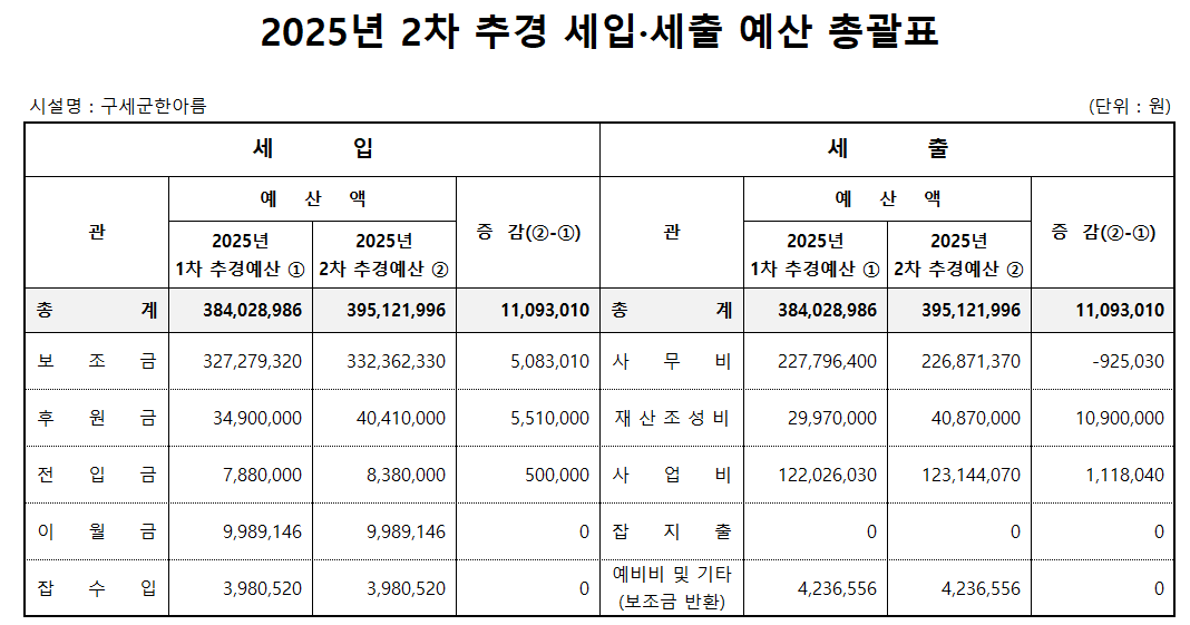 구세군 한아름의 2025년도 2차 추가경정예산서를 공고합니다.